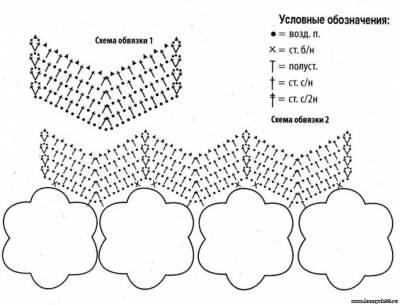 Кайма для рукавов и низа кофточки - вязать по схеме обвязки 1 круговыми рядами