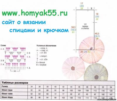 Вам потребуется: 300 (300) 350 г белой и 100 (100) 150 г голубой пряжи Giulia (84% вискозы, 16% полиамида, 75 м/50 г); крючок № 4,5.
