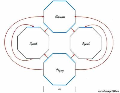 1-й круговой ряд: *1 накид, провязать 2 петли вместе лиц., 26 лиц. петель, повторять от *.