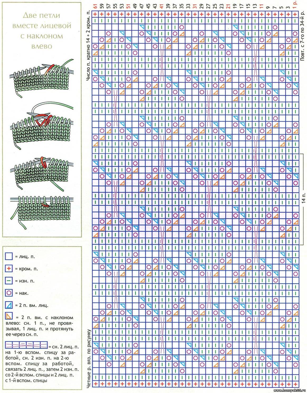 Вам потребуется: 650 г пряжи (50% шерсть, 50% акрил) цвета цемента, спицы №5 и крючок №3,5.