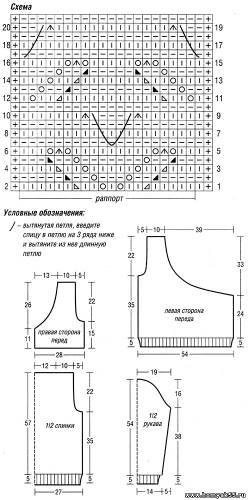Плотность вязания: 15 петель х 19 рядов = 10 х 10 см, связано узором по схеме.