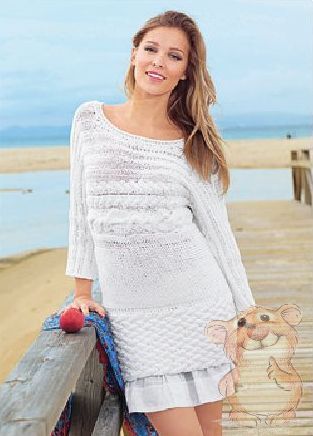 Вам потребуется: 900 (950) 1000 г белой пряжи Soft Cotton (64% хлопка, 36% полиакрила, 70 м/50 г); прямые спицы № 7; круговые спицы № 6.