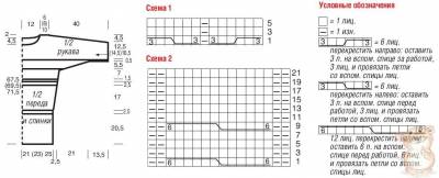 Начать с левого рукава и вязать так же, но для более глубокого выреза горловины закрыть на высоте спинки 3 петли и в каждом 2-м ряду 1 х 3, 1 х 2 и 4 х 1 петле.Сборка