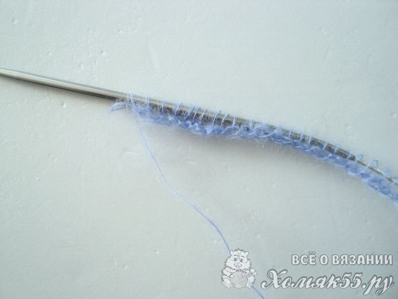 Следующий ряд будет изнаночным. Далее снова лицевой. И так будем чередовать рядочки. Они будут вязаться уже намного легче. То есть вяжем обычную лицевую гладь. Вяжем ту длину, которая необходима до пройм.