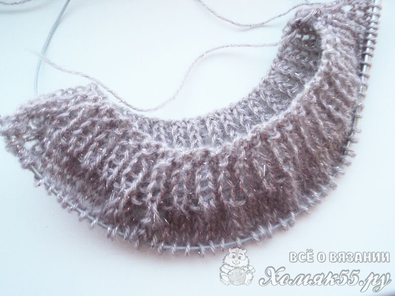 Вяжем, все время чередуя прибавочный ряд и ряд без прибавок.