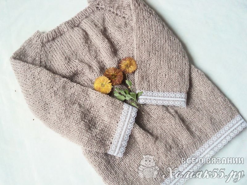 Джемпер – универсальная вещь, которая всегда есть в каждом гардеробе. И в этом мастер-классе мы свяжем мягкий и очень легкий джемпер спицами. Рукав его будет ¾. И сделаем также отделку кружевом. Также чтобы джемпер смотрелся наряднее, можно использовать пряжу с люрексом. Такой джемпер вяжется несложно и не слишком долго.