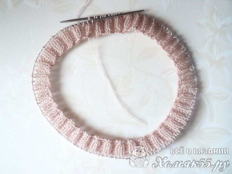 Дальше будем вязать лицевой гладью, то есть все ряды провязываем лицевыми петельками.