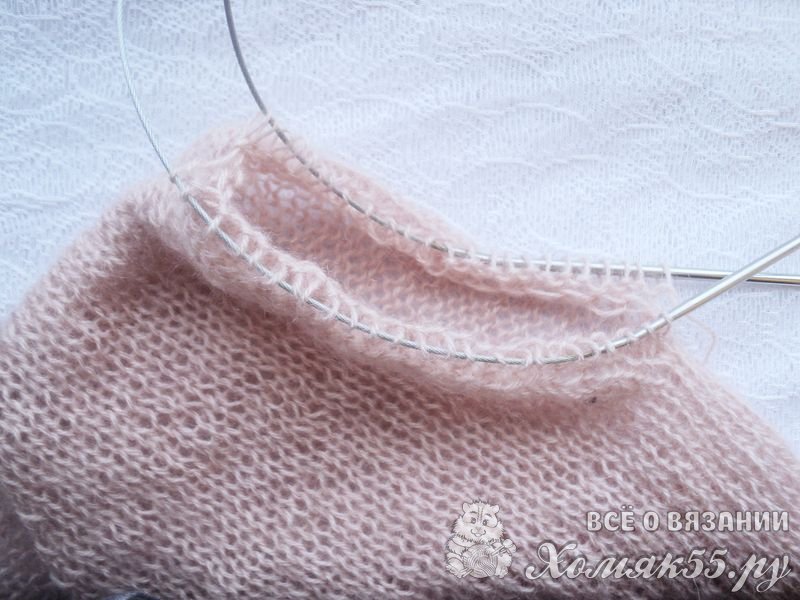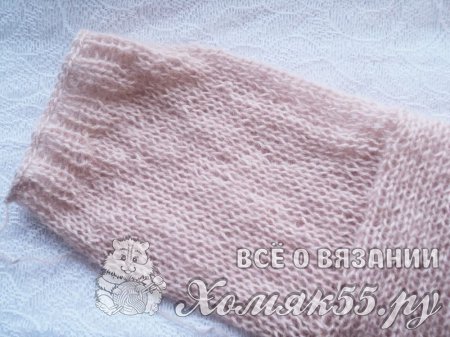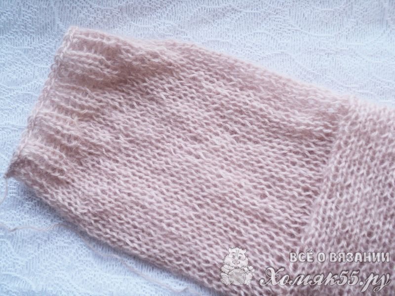 И вяжем по кругу рукав лицевой гладью, не довязывая до локтя 4-5 см. Эти 4-5 см провязываем дальше резинкой 2 на 2. Закрываем петельки.