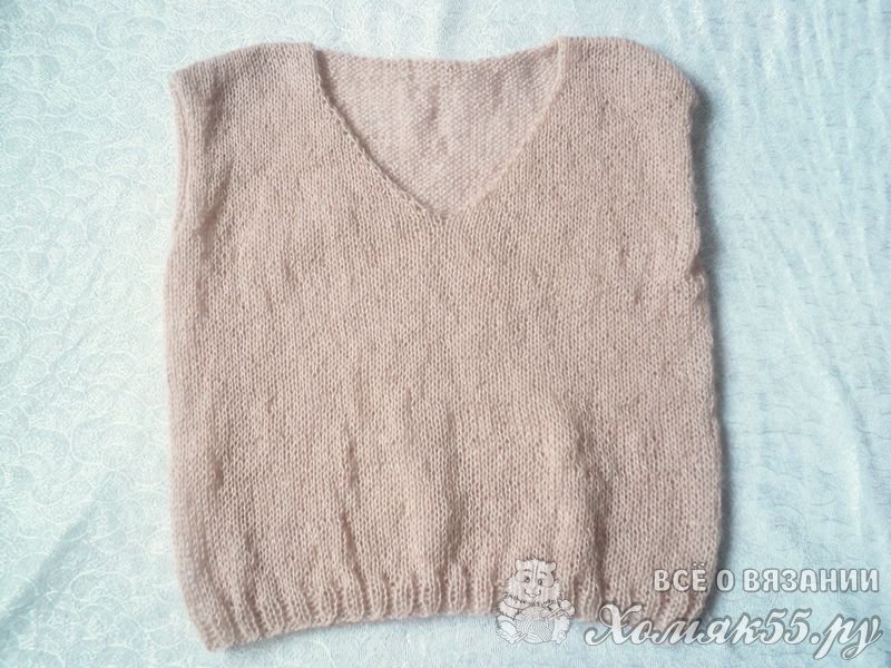 Джемпер с V-образным вырезом спицами