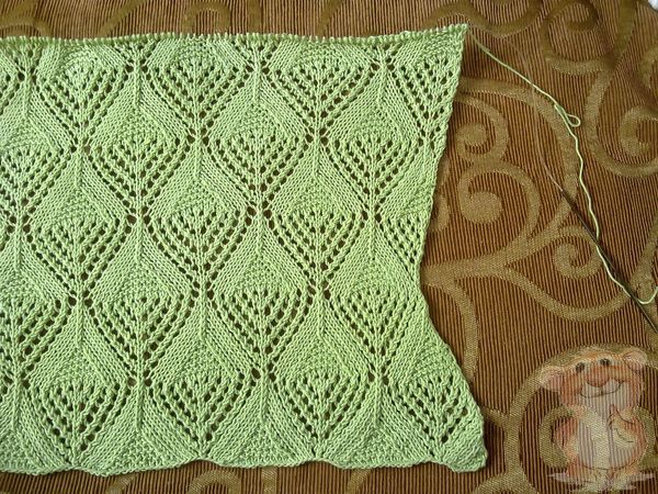 Нам потребуется: 350 г пряжи «Lika» (60% хлопок / 40% акрил, 50г/150м) зелёного цвета, спицы № 1,5, швейная игла, крючок № 1,5, выкройка с рукавом реглан.