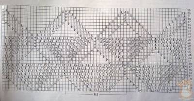 Связать образец основного узора, произвести расчёт по индивидуальным меркам. Для данного размера набрать на спицы 123 петли. 8 рядов вязать прямо, затем убавить 2 раза в каждом 2-ом лицевом ряду, убавить 10 раз в каждом 1-ом лиц. ряду = талия.