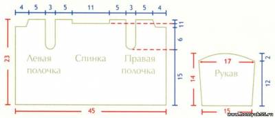 Вам потребуется: 100г пряжи (100% акрил) цвета экрю, немного ниток зелёного, голубого и синего цветов для вышивки, 6 пуговиц, крючок №2.