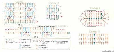 Рельефный полустолбик с накидом, лиц. ( рельефный ПСН, лиц.) - вязать полустолбик с накидом, обводя полустолбик с накидом нижнего ряда с лицевой на изнаночную сторону).