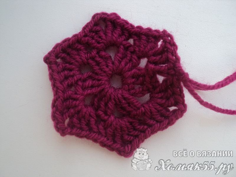 И дальше все ряды будут повторяться. У нас получится шестиугольник. Он будет неровным, будет фолдить. Это не страшно. Нам это и нужно. Вяжем несколько рядочков. Количество зависит от нужного размера.