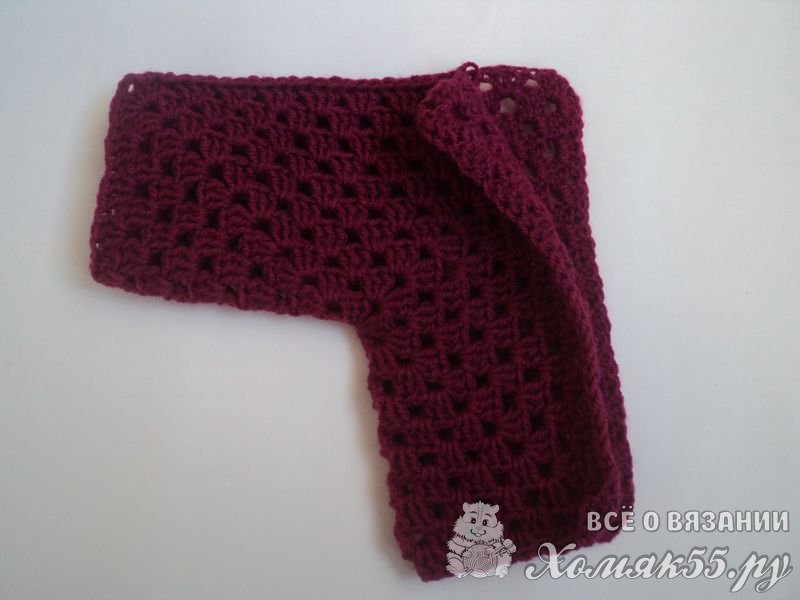 Затем вяжем три ВП и два ССН. Делаем далее две ВП и вяжем три ССН. Снова две ВП и три ССН. И так всего провязать нужно шесть частей из трех ССН.