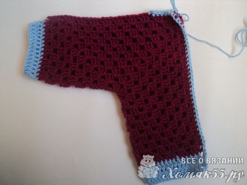 Теперь обвяжем низ нашего будущего джемпера тремя радами ССН. А СБН обвяжем край кофточки и горловину.