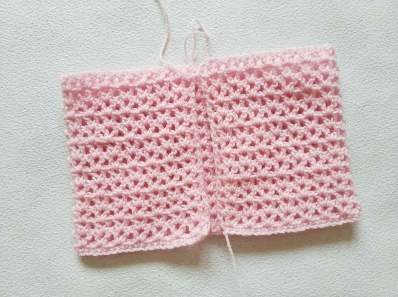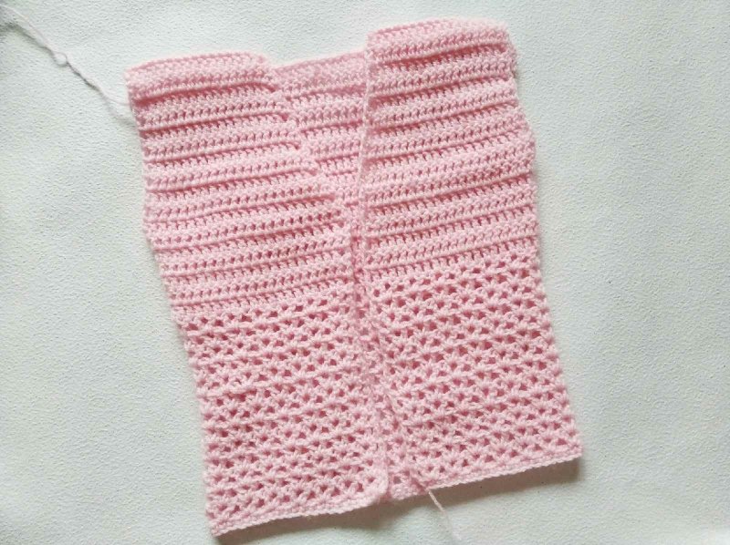 Спинку вяжем без убавок. Необходимо провязать такое же количество рядов, что и у полочек.