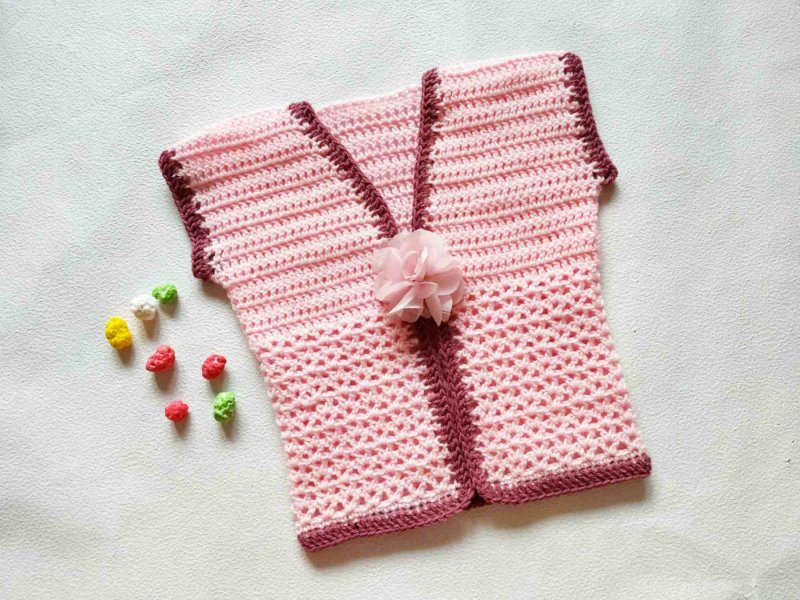 Набираем воздушную цепочку по обхвату груди ребенка. Раппорт узора 2 петли и плюс 2 кромочные.