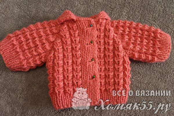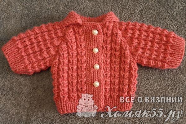 Кофта для новорожденного с рукавом реглан, связанная спицами
