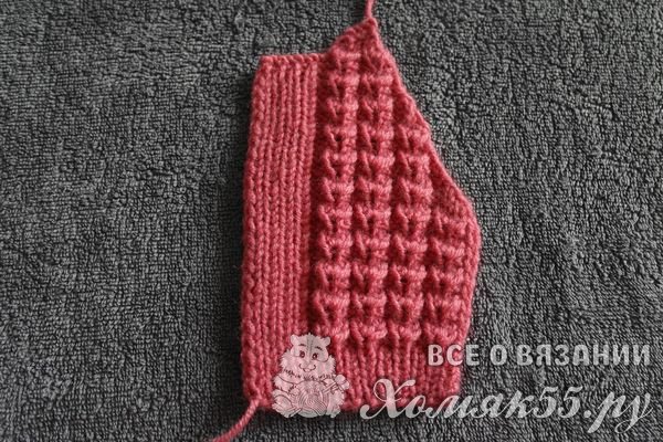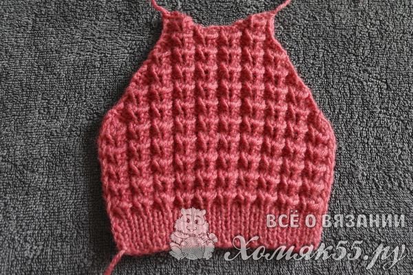 28 петель для узора + 10 петель для планки = 38 петель всего на полочке.