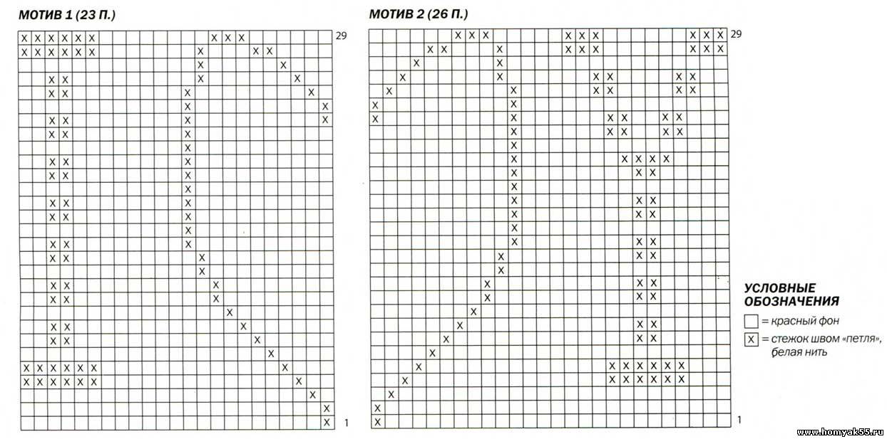 Мотив 2 шириной 26 петель: вышить по счетной схеме швом «петля».