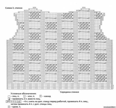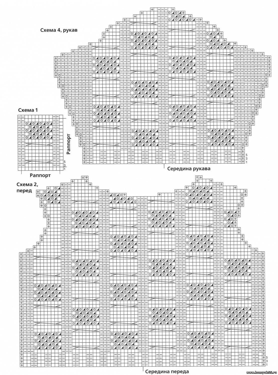 Основной узор: вяжите по схеме 1. На схеме приведены только лиц. ряды, в изн. рядах все петли вяжите по рисунку.