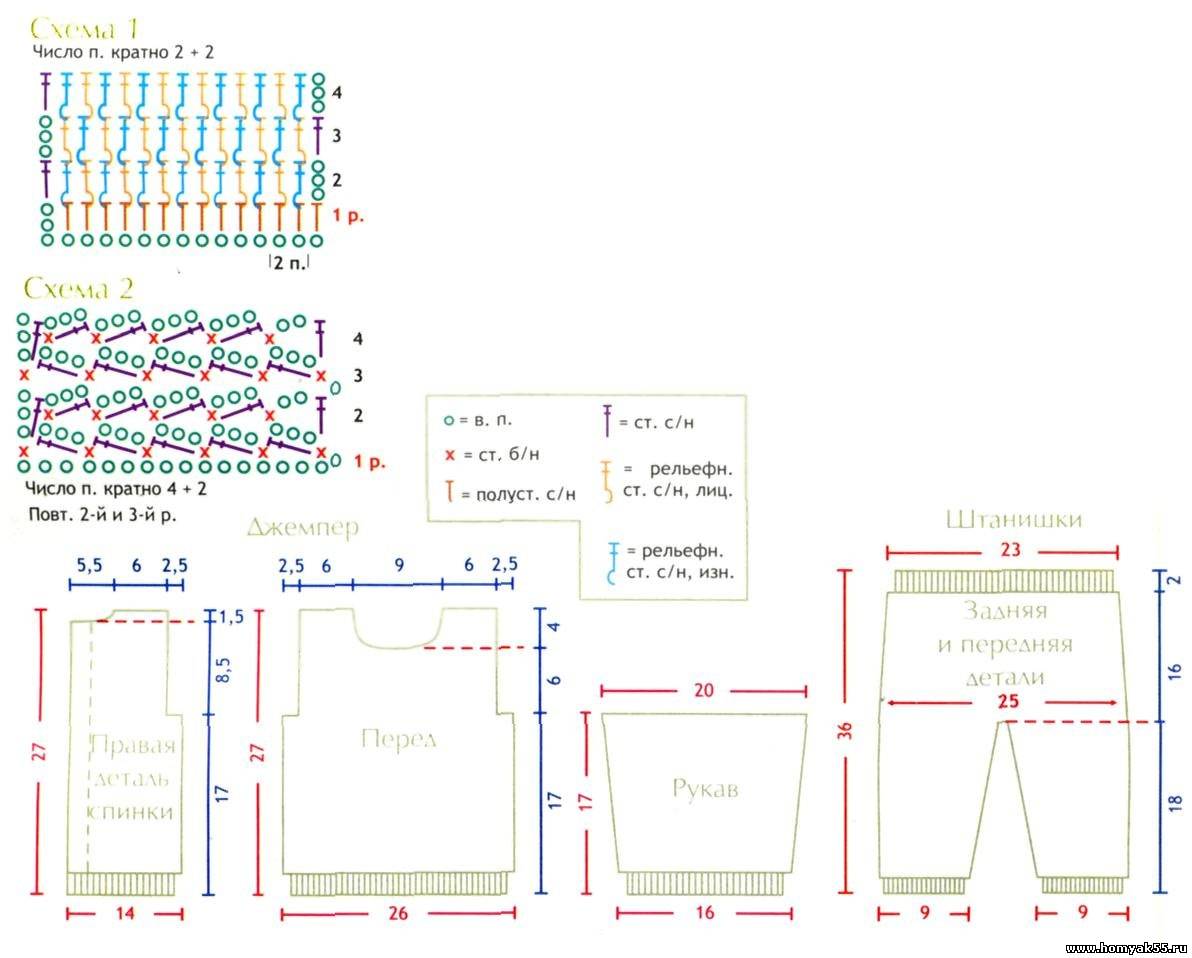 вязания объединить петли обеих штанин, набрав между ними цепочку из 6 ВП