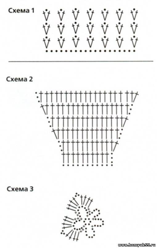 Вяжите крючком № 2 по схеме 1, выполняя убавления в соответствии с выкройкой.