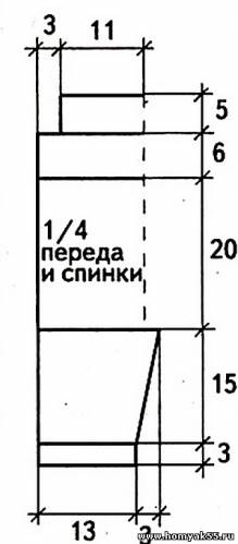 Плотность вязания: 20 петель х 26 рядов = 10 см х 10 см.