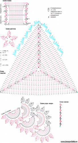 36-й ряд: 3 ВП подъёма, 1 ССН в арку из 1 ВП предыдущего ряда, 1 ВП, 2 ССН в эту же арку, 2 ССН в 3-й ССН предыдущего ряда от крючка, 90 ССН в следующие 90 ССН предыдущего ряда, 2 ССН в след. ССН пред. ряда от крючка, 2 ССН в след. арку из 1 ВП пред. ряда от крючка, 1 ВП, 2 ССН в эту же арку. Вязание закончить, обрезать нить.