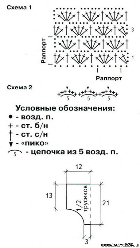 Двухцветные ажурные трусики связаны крючком. Можно связать любой расцветки, например в тон платья или сарафана.