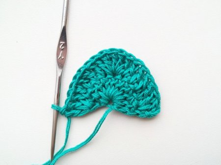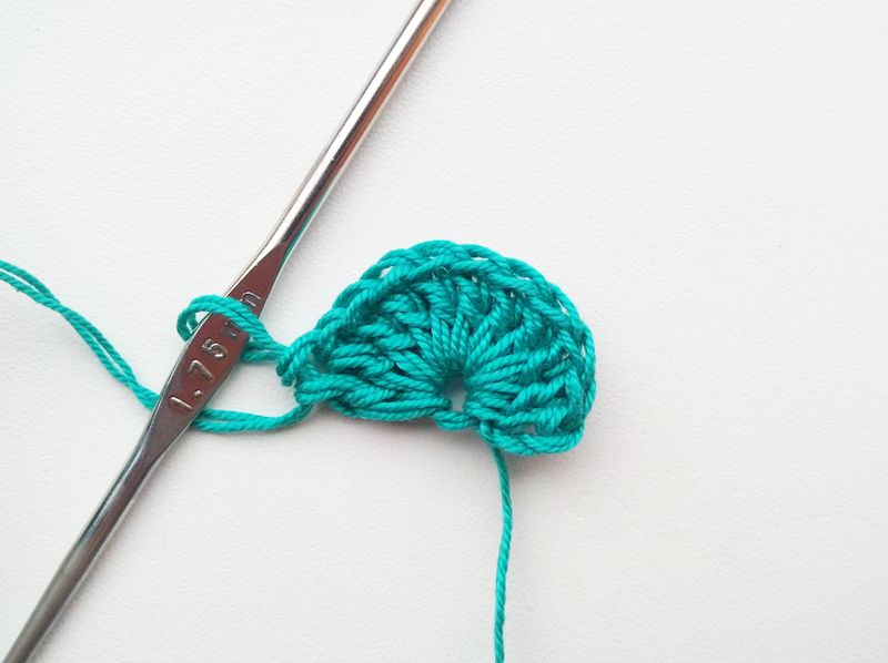 Там, где чашечки соединяются, сошьем их на изнаночной стороне соединительными столбиками. Сшиваем 4-5 петелек.