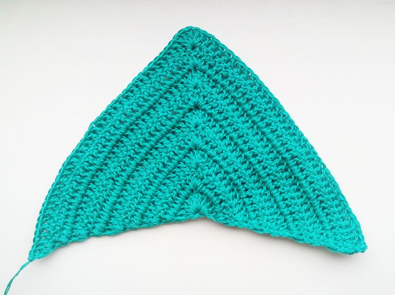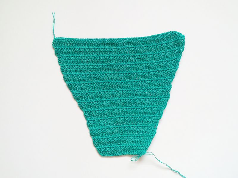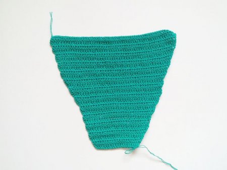 И дальше будем выполнять прибавки по бокам. Вяжем в первом ряду прибавку в первый и последний столбики. Следующий ряд провязываем без прибавок. И так чередуем ряды до нужного размера.