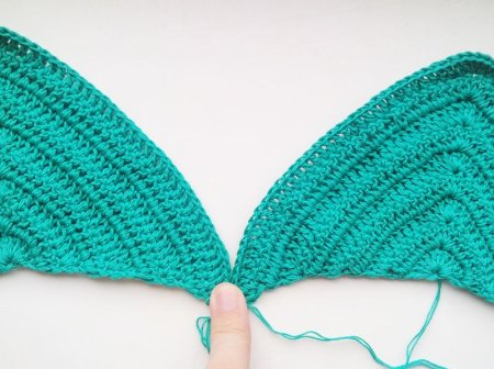 Провязываем по низу первой чашечки столбики с накидом. Затем провязываем сразу по низу второй чашки также столбики с накидом. Всего нужно провязать 2-3 ряда.
