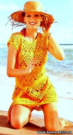 Вам потребуется: 500 (550) 600 г жёлтой пряжи Marbella (73% полиакрила, 27% хлопка, 95 м/50 г), крючок № 4 и № 4,5.