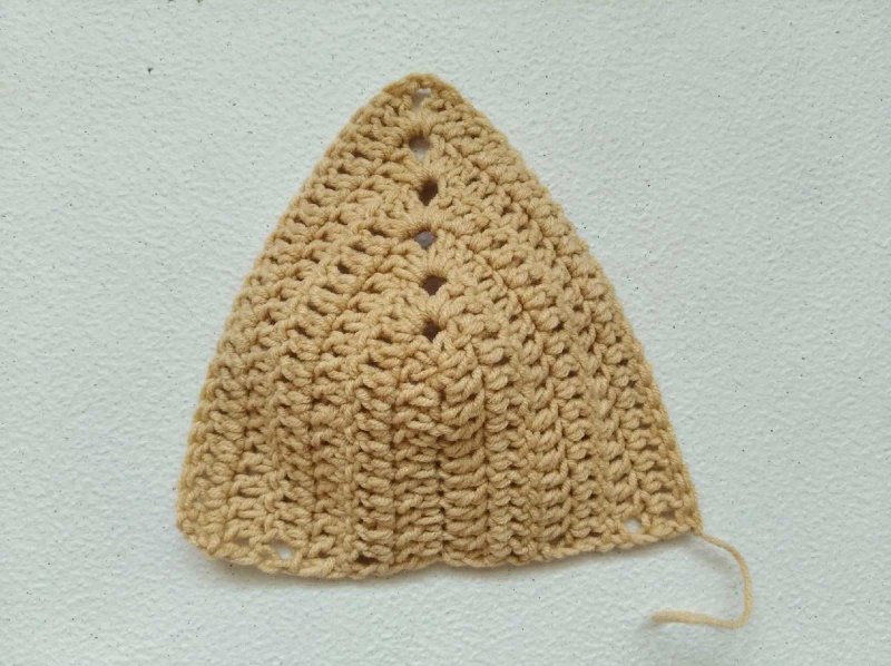 Провяжем еще 1 такой ряд. В нем теперь вяжем 1 Ст СН над столбиком и делаем 1 ВП между каждым столбиком.