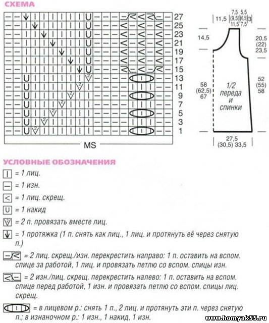 Вам потребуется: 350 (400) 450г розовой пряжи Puntino (100% хлопка, 160м/50г), спицы №3,5, крючок №3.