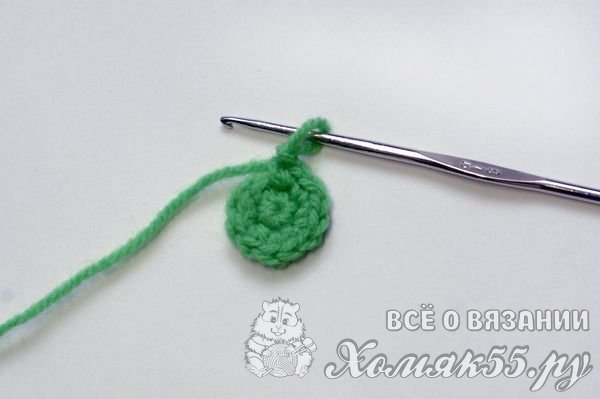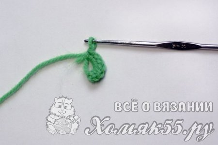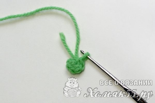 Для начала скрутим из ниточки колечко, в которое начинаем делать 6 СБН.