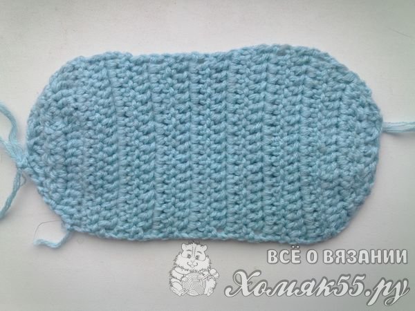 Вяжем подошву. Набираем двадцать петель и вяжем разворотными рядами тринадцать рядков ССН.