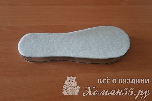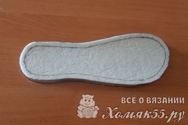 Теперь, я прикинула, до какого места будет доходить верхушка тапка, отняла 1-2 см и поставила маркером на подошве насечки.