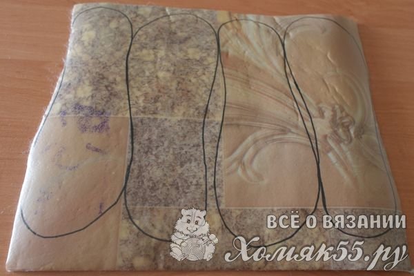 Берем первую пару заготовок. Они должны быть симметричными (т.е. используем «правый» и «левый» отпечаток стопы).