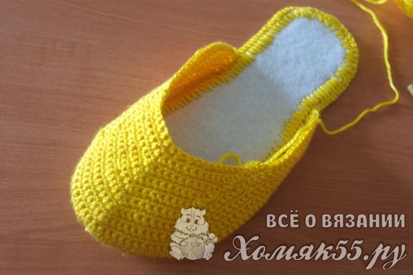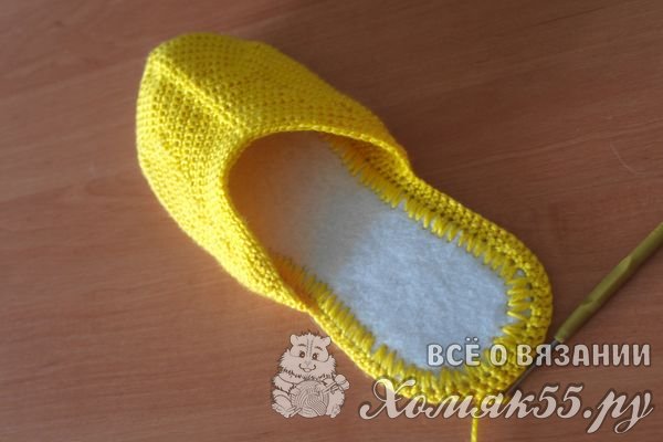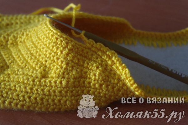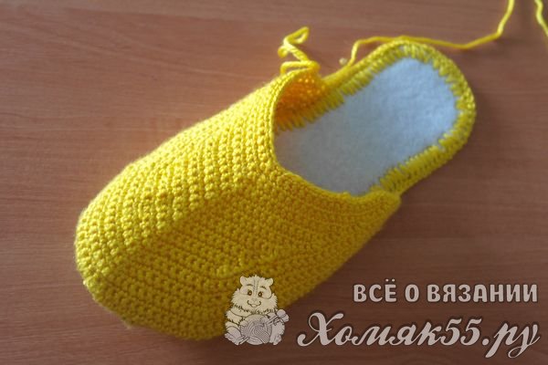 Затем делаем еще один круг полустолбиков, чтобы обеспечить ровный край для удобного вывязывания верхушки тапка.