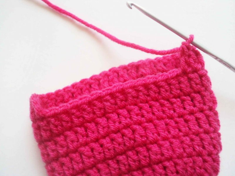 Следующие 5 рядов провязываем по кругу, не прибавляя. В конце каждого ряда количество петель остается прежним.