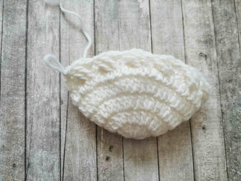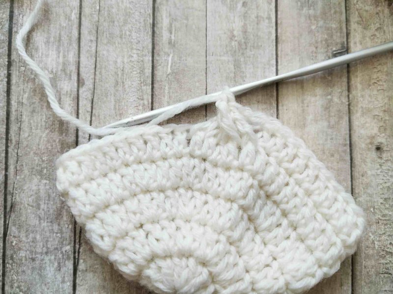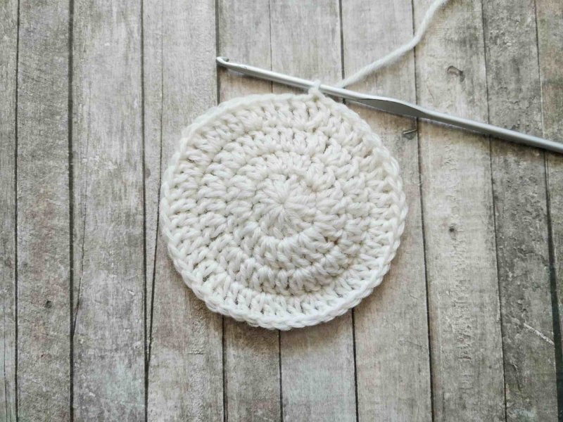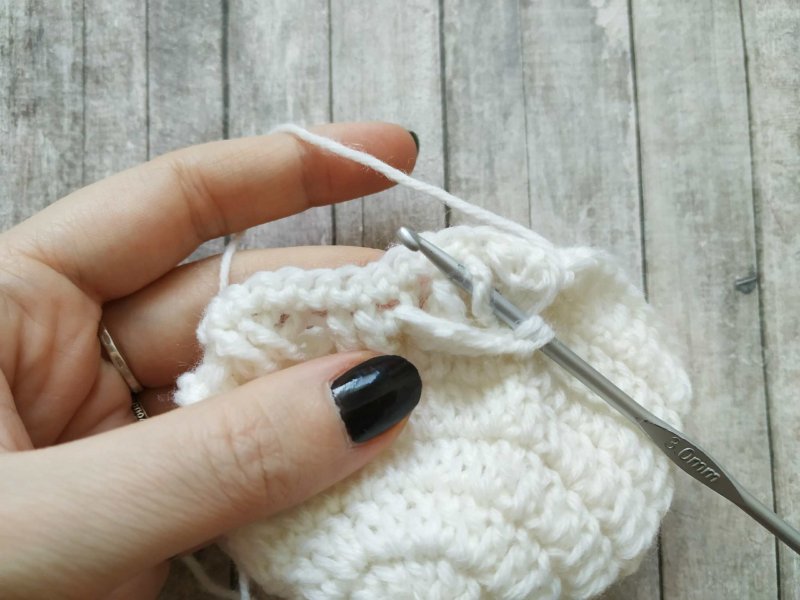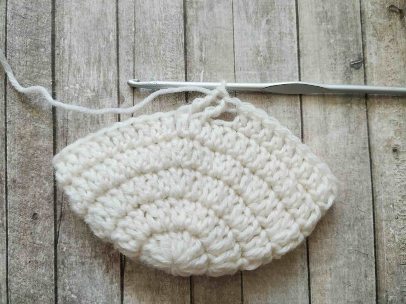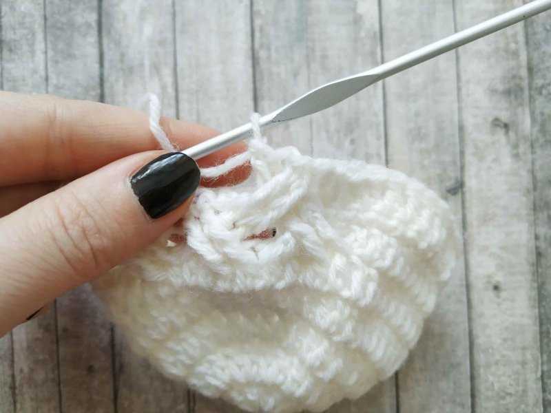 Затем разворачиваемся, делаем 1 петлю и вяжем сбн по кругу до конца. В итоге соединяем ряд в петлю подъема. Разворачиваемся и вяжем снова в обратную сторону ссн до плетенки.