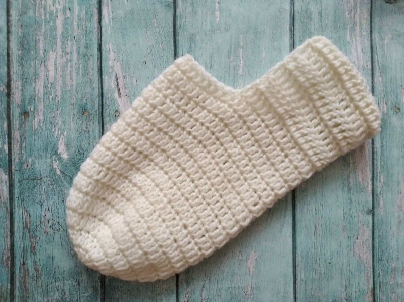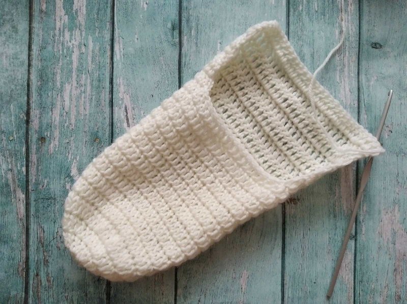 Далее без прибавок по кругу провязываем несколько рядов С/С/Н до взъема ноги.