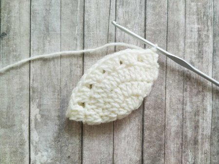 Для 37 размера ноги этого достаточно, так как в новом ряду мы тоже немного прибавим. Но, чтобы узор получился, нужно в последнюю петлю связать еще 1 лишний ст. с нак., а только потом провязать соед. ст.