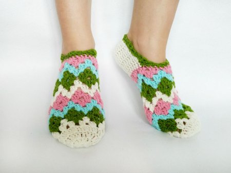 А потом провязываем нужное количество разворотных рядов ст. с нак. Примеряем по ноге.
