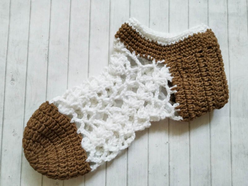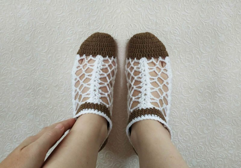 Вяжем второй носочек по той же схеме. Летние ажурные носочки крючком готовы.