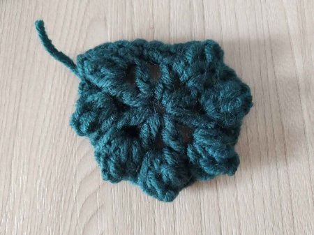 Дальше вяжем в каждую арку по 1 элементу попкорна из 5 столб/с/н., кроме последней. В нее вяжем 3 столб/б/н.
