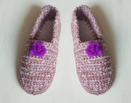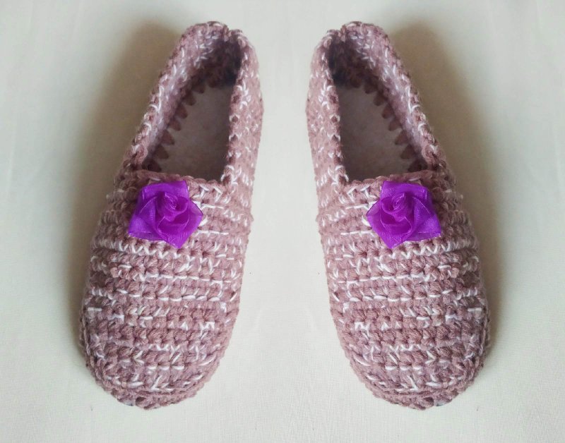 Тапочки крючком готовы. Их можно оставить и таком виде, а можно украсить бусинкой, пуговицей или чем-либо еще.